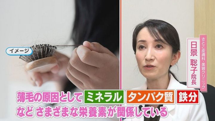 日景先生:「薄毛の原因としてはミネラルやタンパク質・鉄分など、さまざまな栄養素が関係しています。特に女性の場合は鉄分が不足しやすいので、鉄分をしっかり補うことが大事だと思います。薄毛の改善をサポートするために食べるということであれば、とてもいいことだと思う」