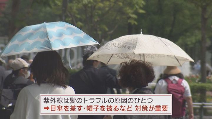 ちなみに、髪の毛は長い間紫外線を浴びると、水分が抜けてパサつきなどのトラブルの原因になるので、“日傘を差す”など、紫外線対策は行いましょう!