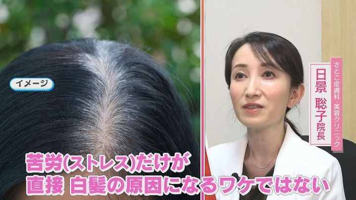 日景先生:「しいて言えばホント。白髪になる原因はいくつかありますので、苦労とかストレスだけが直接白髪の原因になるワケではないです」
