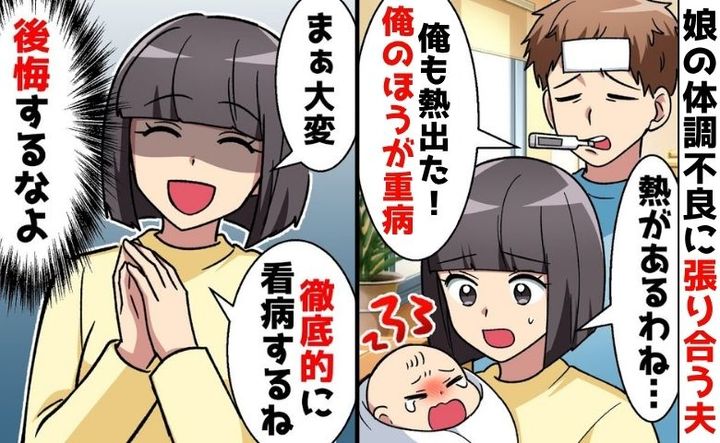 3. 「熱出た!俺のほうが重病!」娘の発熱に張り合う夫。あきれた私は助っ人を要請…夫が後悔することに!