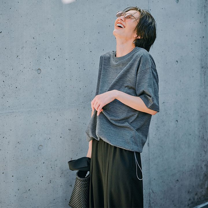 霜降りグレーTシャツは きれいめコーデにも活躍!