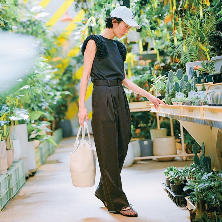 ②ボトムス次第で表情を変える「黒Tシャツ」コーデ3選