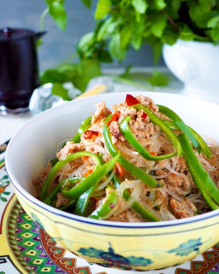 レンジだけで簡単にできるのがうれしい、麻婆ピーマン春雨。