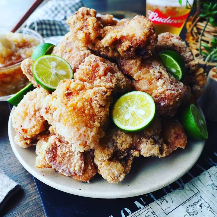 「旬の新生姜をたっぷり使って、ざくざくジューシーでとまりませんよ~」と@shana.mamaさん。すだちやレモン、かぼす、ポン酢おろしなどお好みで添えて、揚げたてサクサクを召し上がれ!