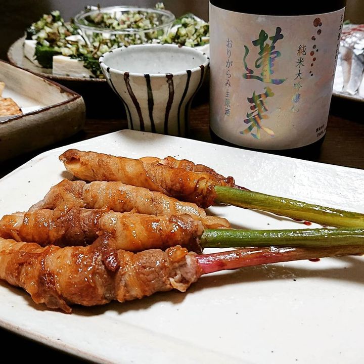 いかにもお酒が進みそうな、葉生姜の肉巻き。