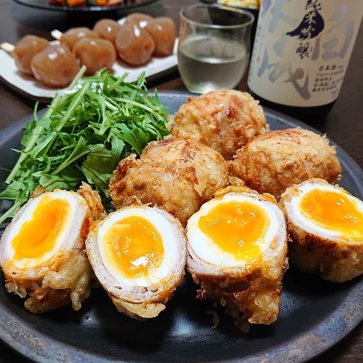 とろっとろの半熟玉子が何ともおいしそうな、とろたま肉巻きから揚げ。