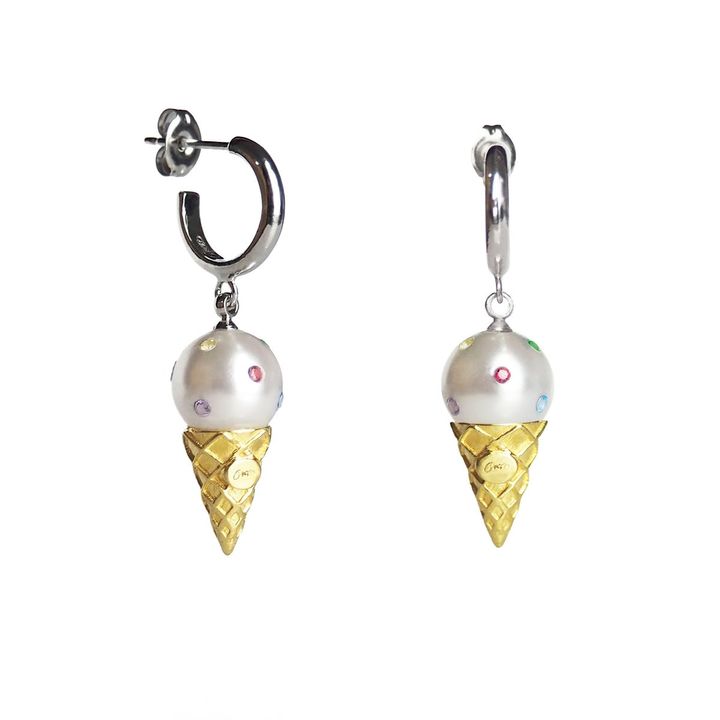 夏季限定で、数量限定販売のスペシャルアイテム。カラースプレー部分はストーン、アイスクリーム部分をパールに見立てた遊び心溢れるデザイン。耳元をぐっと華やかにしてくれます。¥9,900/CHOCO BY KYOKO