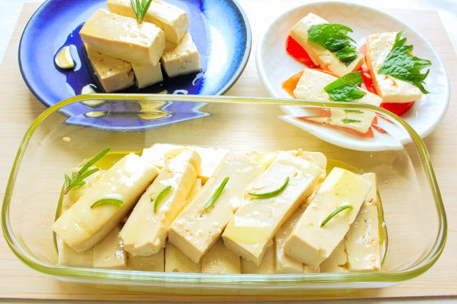 購入した豆腐をパックのまま冷蔵庫に入れておくなら、パパッと調理してオイル漬けにしちゃいましょう!クリーミーでおいしい「豆腐のオイル漬け」を楽しめますよ♪