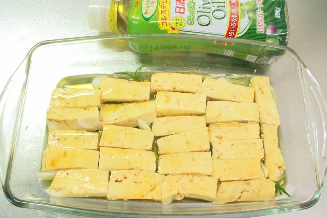 オリーブオイルに漬けた豆腐は、食べたことがないので、さっそく作ってみます♪