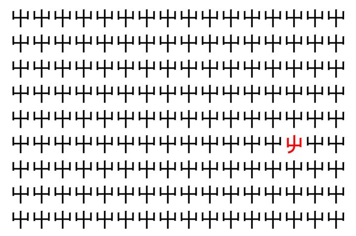 2. 【脳トレ】「屮」の中に紛れて1つ違う文字がある!?あなたは何秒で探し出せるかな??【違う文字を探せ!】