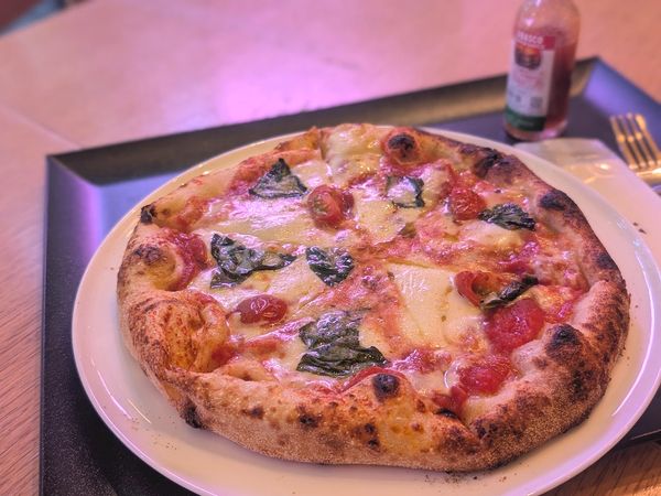 北海道産のモッツァレラチーズとピザに合うように厳選したトマト、そしてフレッシュなバジルを使用。ふっくらもちもちの生地が特徴のピザで、焼き立てでいただくことでさらにおいしさがアップ。シンプルだからこそ一つ一つの素材のうまさが引き立つピザでした。