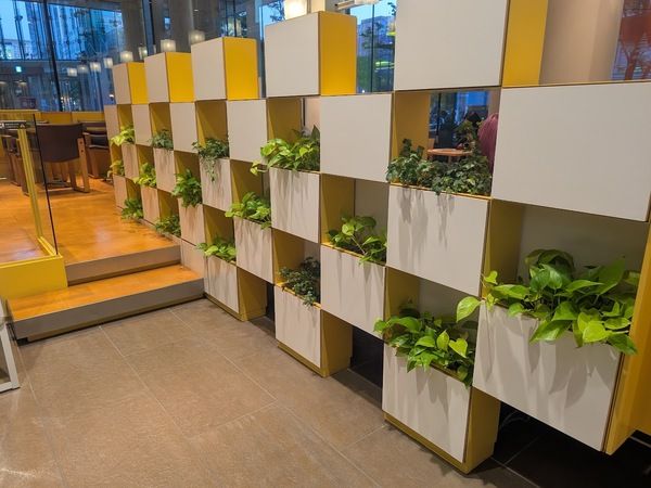 無事注文が終わり、マルゲリータの焼き上がりまで10分ほどかかるとのことだったので、席を探して待つことに。店内は黄色と白を基調に、ところどころに緑が飾られていてとてもさわやかな雰囲気。全体が窓に囲まれているので、とても明るく開放感いっぱいの空間でした。テラス席もあるので、お天気のいい日は外で食べるのも気持ちがよさそうですね。
