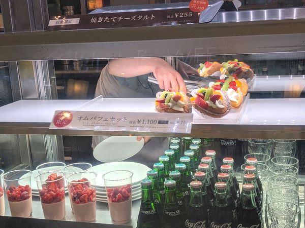 訪問時間は平日の夕方17時ころ。にもかかわらず、席はかなり埋まっていました。マルゲリータを食べると決めていたのに、注文前にショーケースで大好きな『オムパフェ』を見つけてしまい、悩んだ挙句、マルゲリータ・オムパフェ・ドリンクのセットにしました。『オムパフェ』も大通公園店限定なんですよ。