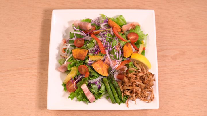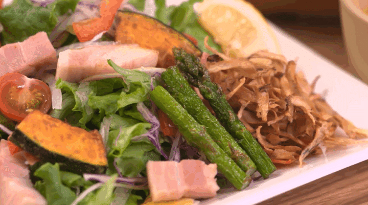 自分でも農業をしていて、最新の農業に興味津々だと話す、タレント・つるの剛士さん。カフェ“KUBOTA AGRI FRONT CAFE”でいただくのは、まるごとレタスのフレッシュサラダセットだ。メインのフレッシュなレタスは、植物工場でAIの技術を使い、ロボットが栽培した新鮮な野菜。朝採れたてのものをランチに食べられるというスピード感だ。通常は、収穫してから時間が経つと野菜のうまみが減ってしまうが「野菜本来のおいしさを知ってほしい」という願いを込めた一皿になっていた。つるのさんからは「贅沢ですね。野菜でお腹いっぱいになれるなんて!」と笑顔がこぼれた。