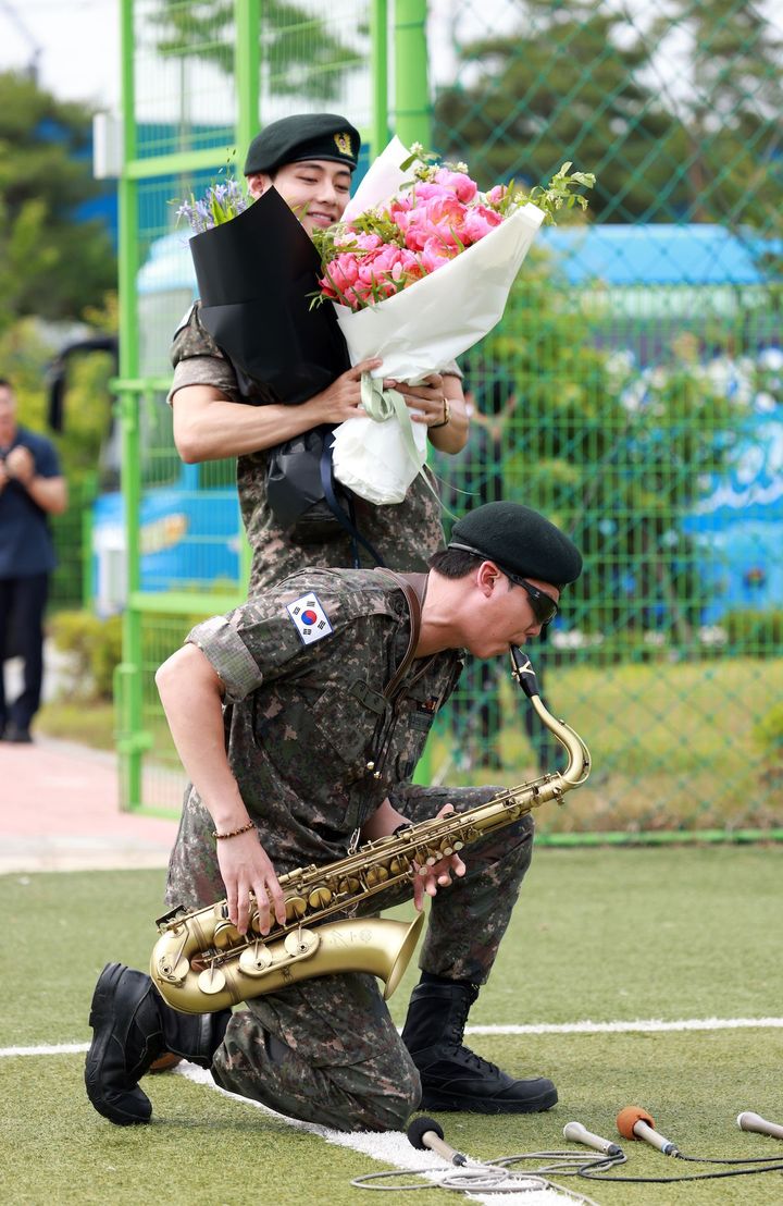 6月10日(現地時間)BTSRMとVが、2023年12月11日からの1年半にわたる兵役期間を終え除隊した。陸軍第15歩兵師団軍楽隊に所属していたRMは、サックスを手に持ち登場。駆けつけた報道陣やファンの前で「名探偵コナン」のテーマ曲を披露した。