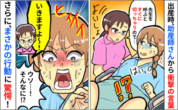 すると助産師さんから「待てない先生だとすぐ会陰切開しちゃうので、ギリギリまで伸ばして頭が出てから呼びましょう!」と衝撃の発言が。