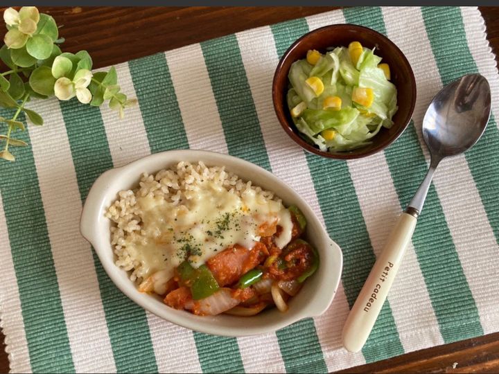 みなさん、ケチャップソースをスパゲティに絡める「ナポリタン」は好きですか?純喫茶によくあるメニューですが、目にしたらついつい頼んじゃいますよね〜。お米大好きなわが家では、このケチャップソースをご飯に合わせる「ナポリタンご飯」がテッパン!スパゲティだと粉チーズをかけるところ、とろけるチーズを使って、ドリアっぽく仕上げるのがポイント。たくさん作って冷凍もできるので、忙しい毎日に大助かりな一品ですよ♪