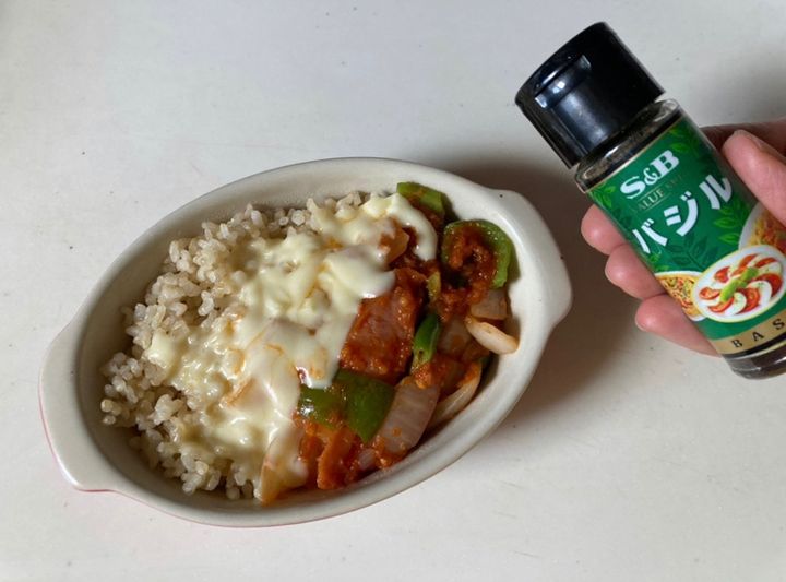 ご飯にもナポリタンソースにも火が通っているので、チーズが溶ければOK!