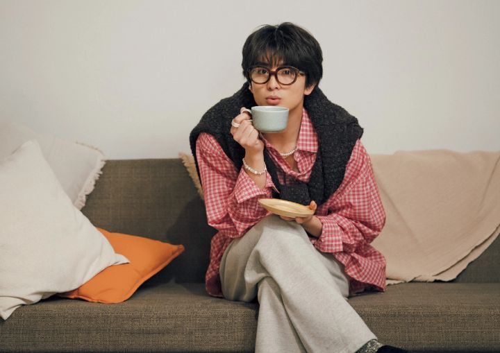シャツ¥5,280/HOLY IN CODE(SPES PRESS) パンツ¥17,600/レミ レリーフ(ユナイト ナイン) 眼鏡¥33,000/クオン(シアン PR) ネックレス¥37,400、ブレスレット¥24,200、リング¥27,500/以上ハーゴ(ロール) その他/スタイリスト私物