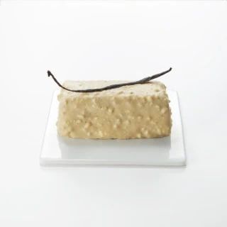 バニラ風味のパウンドケーキを、アーモンド入りのホワイトチョコレートでコーティングした「ケーク アンフィニマン ヴァニーユ」。パウンドケーキって、バターや洋酒などをたっぷり使用しているからか比較的重く、ひと切れで十分というイメージだったのですが、これはバニラの香りが上品で繊細で……、まわりのアーモンドの食感もよく、ペロリと2、3切れ食べられてしまう美味しさ! こんな高貴なパウンドケーキが世の中にはあったのかとエルメ氏に脱帽です。