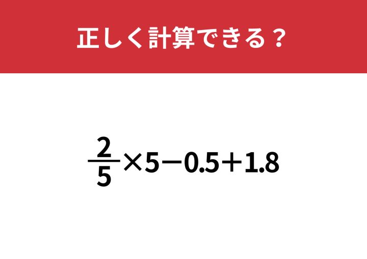 分数と小数の計算ってどうやるんだっけ?「2/5×5−0.5+1.8」正しく計算できる?