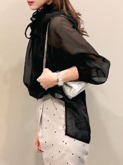 2.きちんと感と華やかさを両得できる「シアーブラウス」