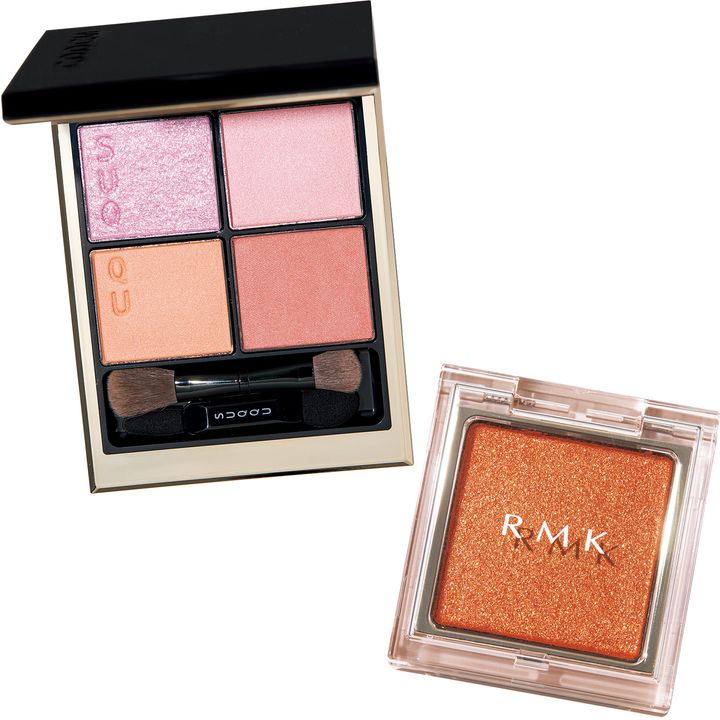 夏の太陽を思わせるディープオレンジ&ディープコーラルの濃淡をメインに、パープルピンク&淡めのピンクパールをイン。SUQQU シグニチャー カラー アイズ 147 ¥7,700 ※5/2限定発売(SUQQU)