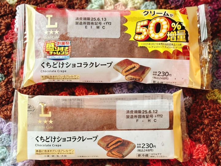 今回、くちどけショコラクレープと比較して、盛りすぎ!くちどけショコラクレープのクリームがどれだけ増えたのか、検証&実食レポを紹介します。