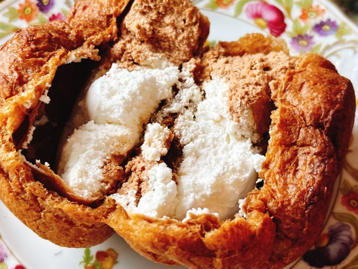 見た目はメロンパン?!と思うほどの大きさと、表面がもこもこしています。通常のシュークリームがそのまま大きくなっていて再現度にビックリです。