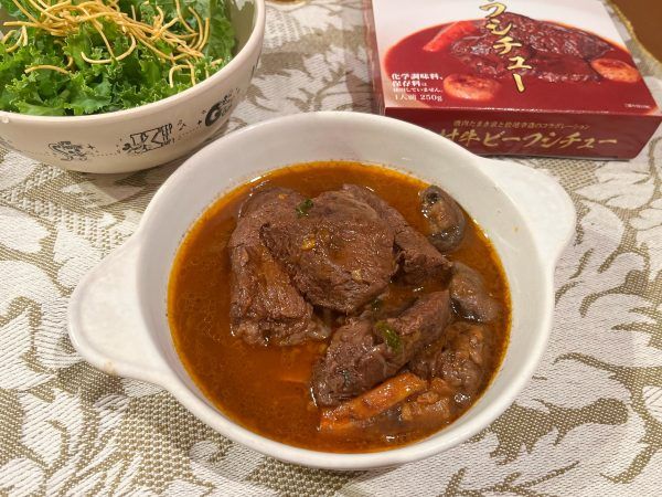 レトルトとは思えないほど、お肉がごろごろ入っていて、お皿に盛った瞬間、びっくりしますよ!