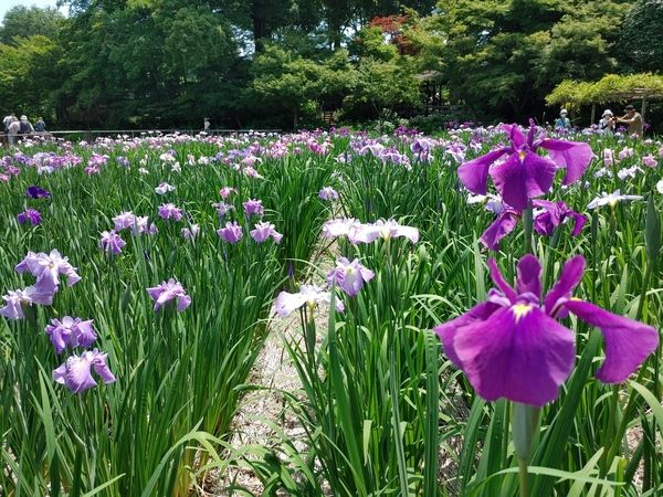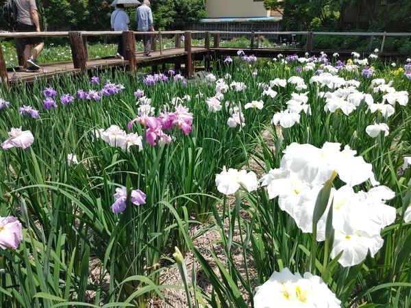 園に入ってみると、一面に色とりどりのしょうぶの花が咲いています。