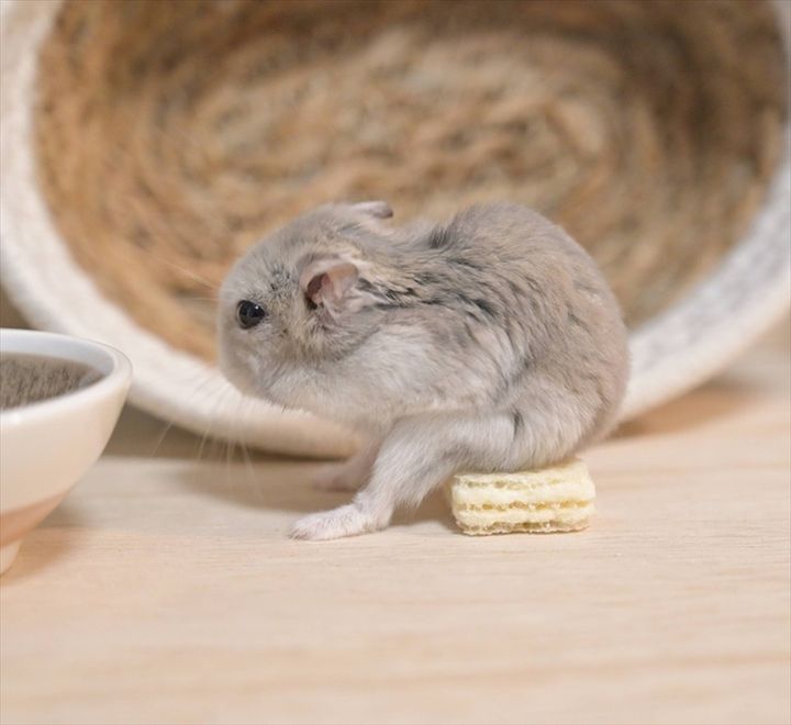 ウエハースに腰かけている!?ハムスターのまさかの行動が話題に「銭湯の頭洗いポーズ」「楽屋裏で着ぐるみの被りものを外してのひと休み感」