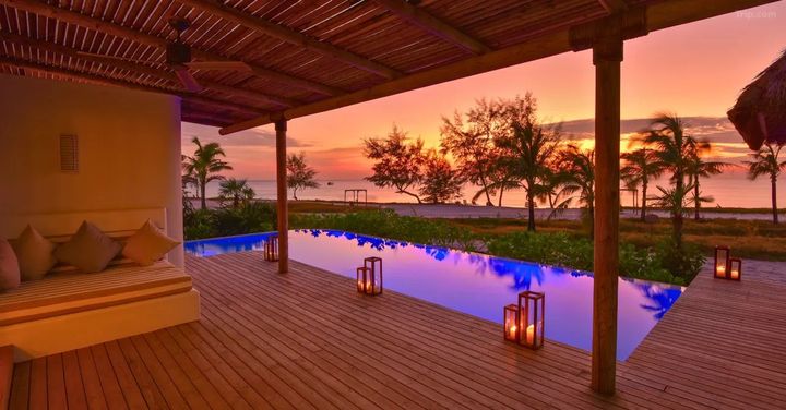 手つかずの自然が残るベトナムのソンカウで、2020年に開業したのがこの「ザニエ バイ サン ホー」。広大な丘陵に70を超えるヴィラが並び、客室やプライベートプールから白砂のビーチや山々を望むことができる。時間によって刻一刻と表情を変えるその光景は、1日中見ていても決して飽きることがないだろう。