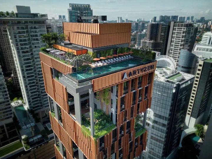「アーティゼンシンガポール」はオープンからまだ1年半ながら、シンガポールの文化を反映した独自のコンセプトで、大きな注目を浴びているモダンライフスタイルホテルだ。最上階の社交場であるザ・ルーフ・ガーデンには宿泊者専用のインフィニティプールが併設され、涼みながら美しい街並みを見下ろすことができる。