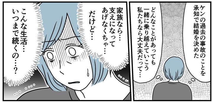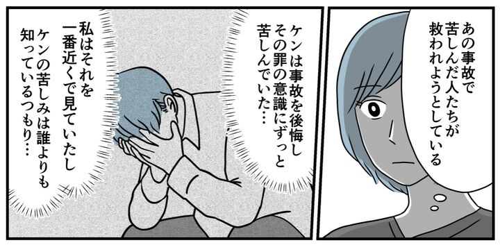 ケンの過去を受け入れる、その罪を一緒に背負うと決意して結婚したはずなのに、結局私には覚悟が足りなかったということなのでしょうか。「もう無理だ……」それが私の出した結論でした。