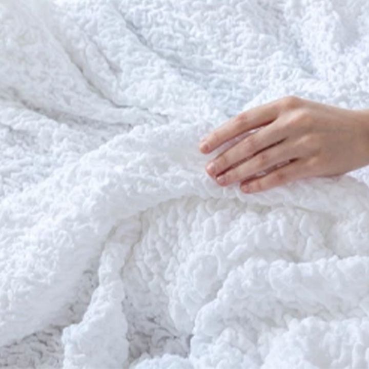 薄く軽く、デザイン性にも優れたガーゼケット。ガーゼを重ねた層の間に含まれた空気が、蒸れにくくさらっとした寝心地を与えてくれる。ストレッチ性にも優れているので、体にフィットして使い心地も抜群。使うほどに起毛してさらに空気を含み、よりやさしい触り心地に。