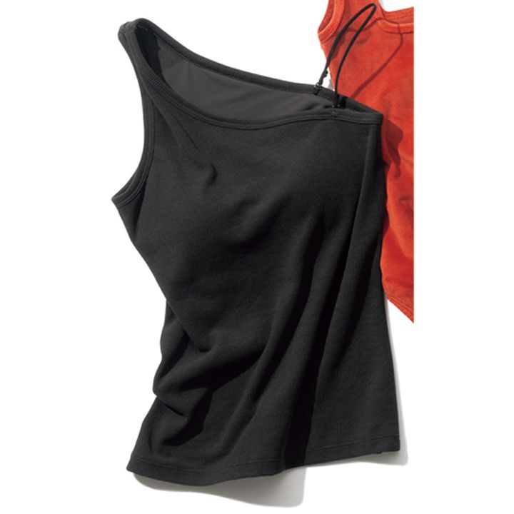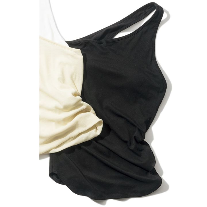 ワコールとスタイリスト一ツ山佳子さんの協働によるカップインウェア。スタイリングの自由度を広げてくれる。タンクトップ¥11,000(アワワコール/ワコールお客様センター)