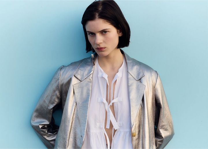 jacket by ALYSI, blouse by GANNI, earrings by CULT GAIA