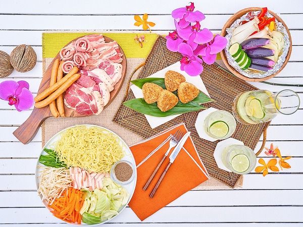 例)「ジャパニーズBBQ食材セット+120分ソフトドリンク飲み放題付き」(席利用150分制)6028円から
