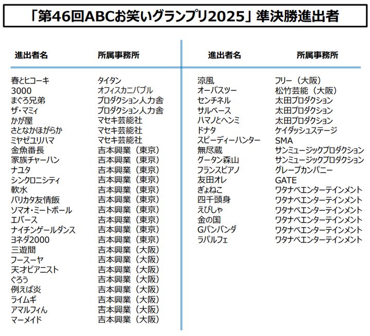 3. 山里亮太がABEMA生配信で発表 「ABCお笑いグランプリ2025」ファイナリスト12組は誰になるのか? いよいよ来週6月17日(火)準決勝!