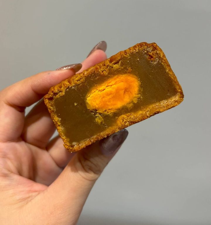 しっとりとした皮に甘い餡を包み、その中にアヒルの卵の黄身が入った一品で、