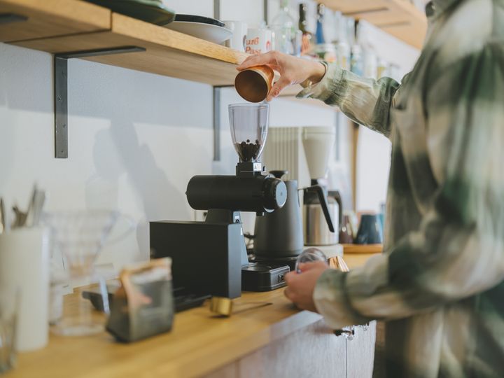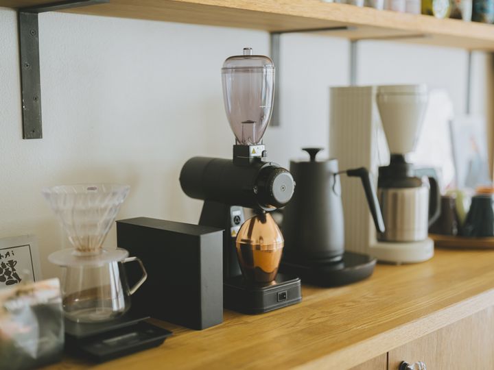 「オープンな収納になっているのでキッチン用品も好きなデザインのものにしたくて、なかでも気に入っているのがカリタのグラインダーNEXT Gです」(Takujiさん)