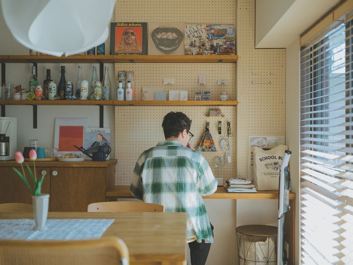 「カウンター端、デスクスペースのある壁面には、友人にお願いをして有孔ボードを取り付けてもらっています」(Takujiさん)