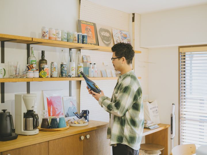 自身で日本酒のイベントを企画、開催されているTakujiさん。デザインも味も好きだというお店の缶や瓶がずらりと並んでいました。