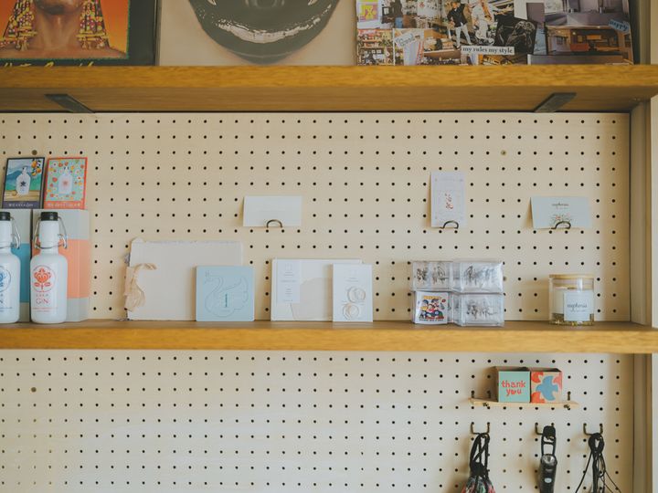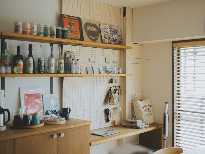 「家に人を呼ぶことが多いので、我が家に来てくれた友人の商品をここで売ることができたらいいなと思って取り付けてもらいました。アイテムとショップカードが飾れるスペースになっています」(Takujiさん)