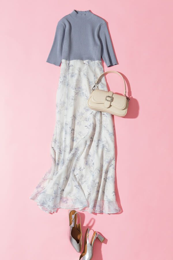 ワンピース¥17,930/MERCURYDUO(MERCURYDUO ルミネエスト新宿店) バッグ¥58,300/アンテプリマ/ワイヤーバッグ(アンテプリマジャパン) パンプス¥24,200/HIMIKO(卑弥呼)