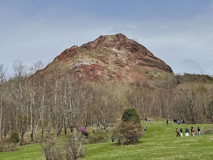 まだ冬の気配が残る4月のオロフレ峠を下って、壮瞥町にやってきたしろまる。同町は洞爺湖の東側一帯に位置する人口2,300人弱(2025年4月時点)の小さな町ですが、ほかの地域にはない“ある特徴”をもっています。その象徴ともいえる存在がこちら。