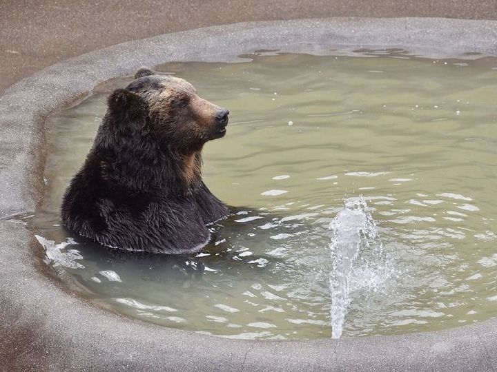 水に浸かる熊。見た目は完全に入浴中の人です。「あぁ~」っていうため息が聞こえそう (笑)