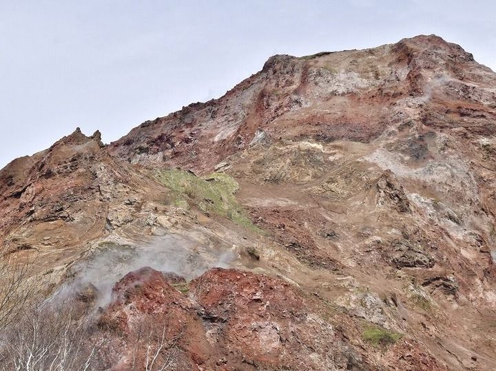昭和18年の噴火以降に元々麦畑だった土地が隆起して山となった「昭和新山」(標高:約400m)です。草木の成長を許さないゴツゴツとした山体と岩肌から立ちのぼる煙は、まさに山が活きている証拠。「ハワイが毎年数cm日本に近づいてきている」と言われてもいまひとつピンときませんが、こうして目の前で大地の躍動を感じると、あらためて自然の力を思い知らされます。