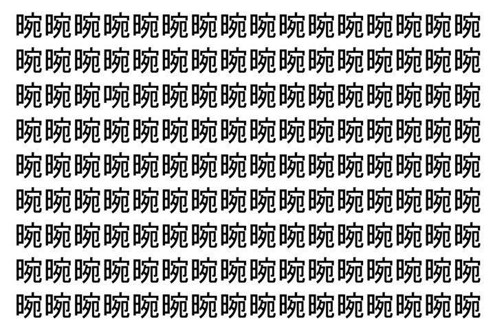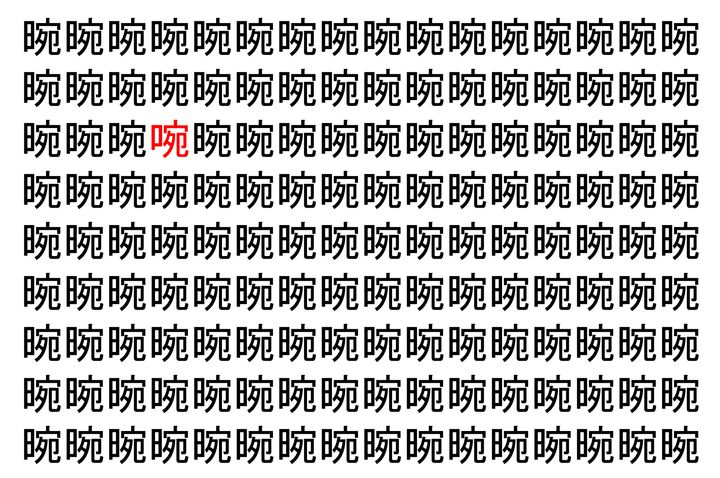 画像の中には、「晼」という漢字が縦に9行、横に16個並んでいます。 全部で144個となりますが・・・、そのうち1つは「異なる漢字」となってますよ!!